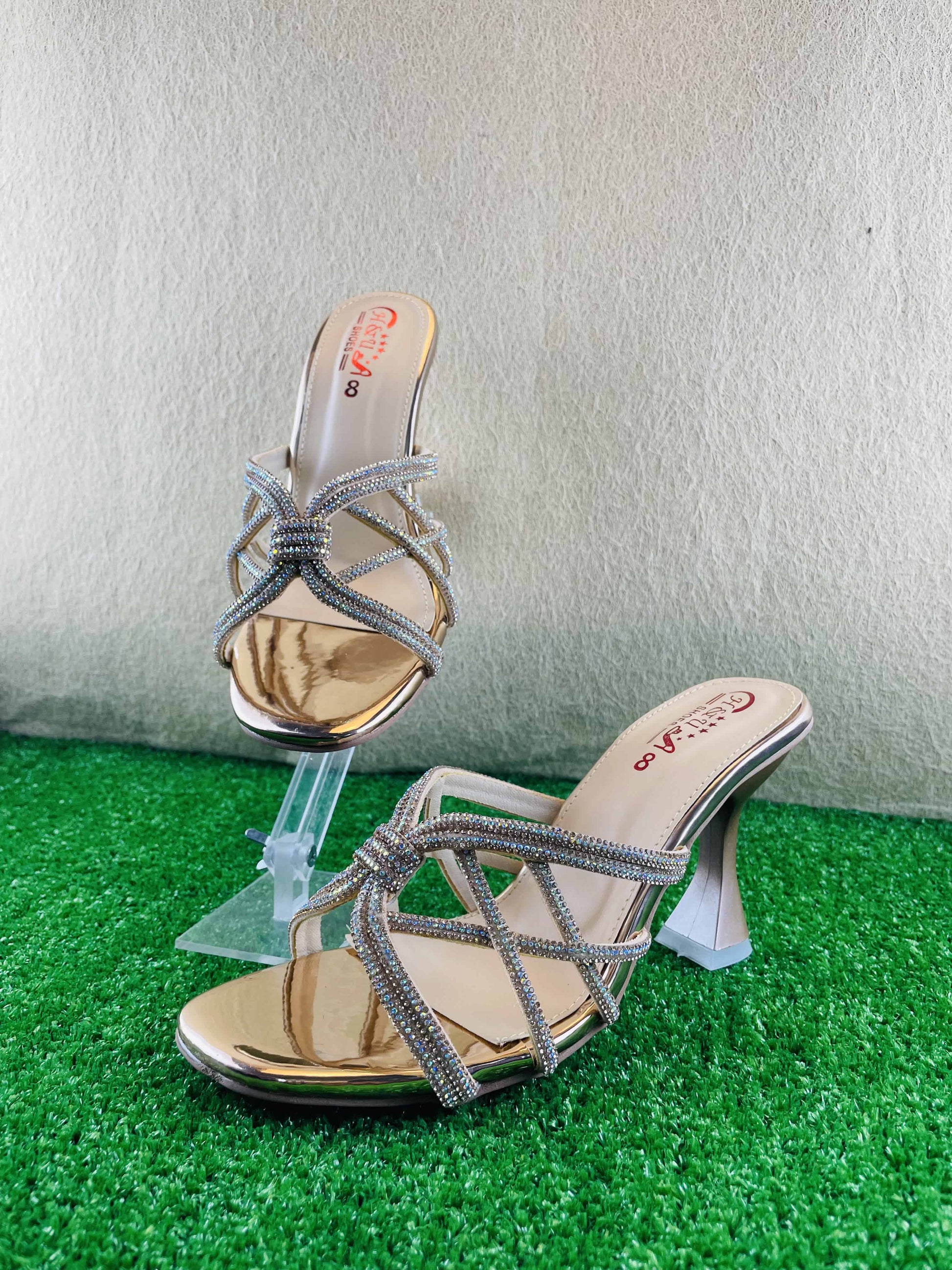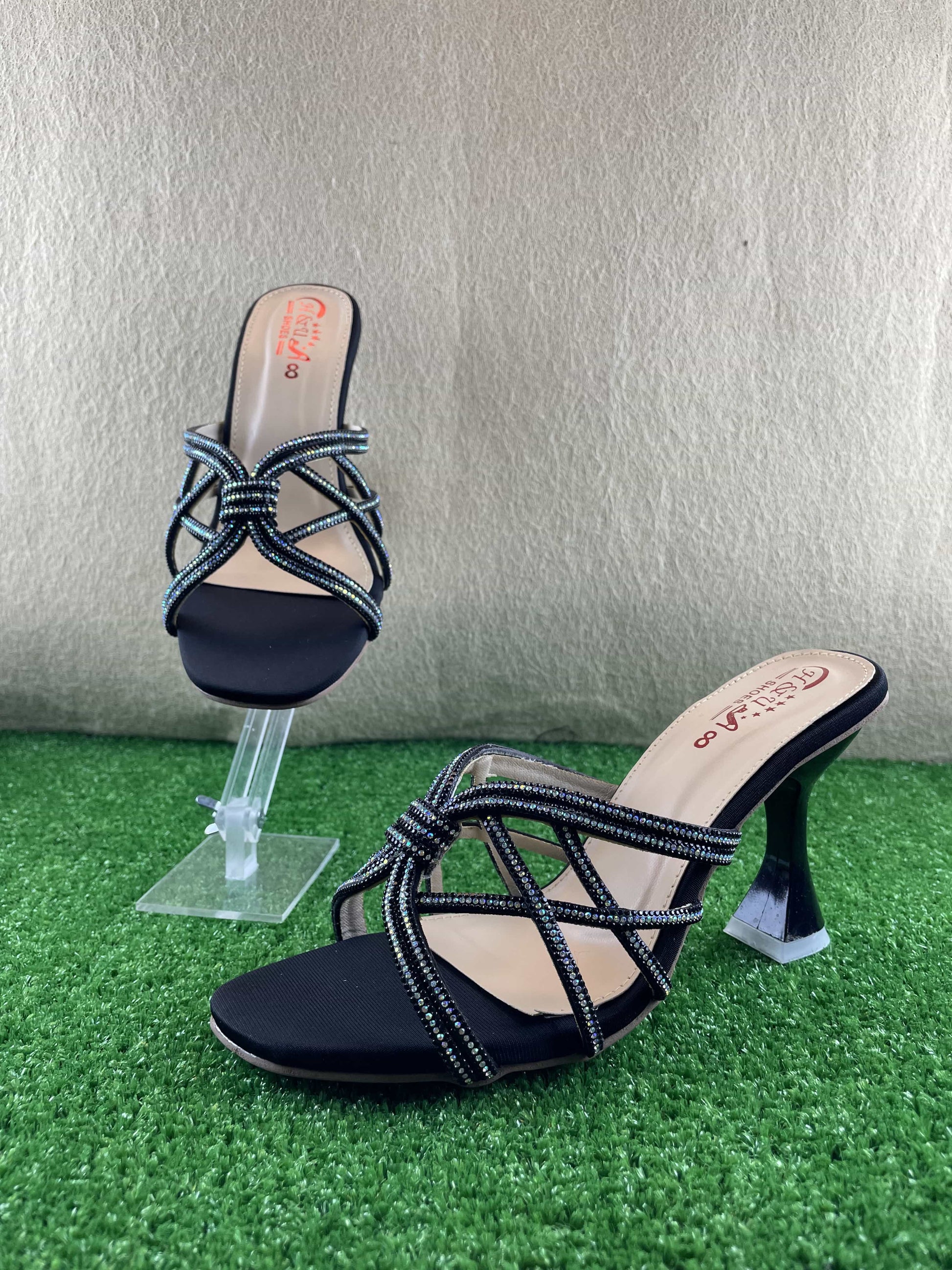 Elevate your evening look with the Twinkle Strap Heels. These striking slip-on sandals blend intricate design with dazzling glamour, making them the perfect statement shoe for any party, wedding, or special occasion.
